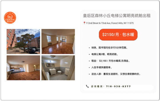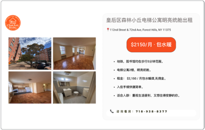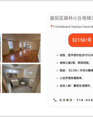 皇后区森林小丘电梯公寓楼明亮统舱出租2150 位置:📍112 St & 72nd Ave, Forest Hills